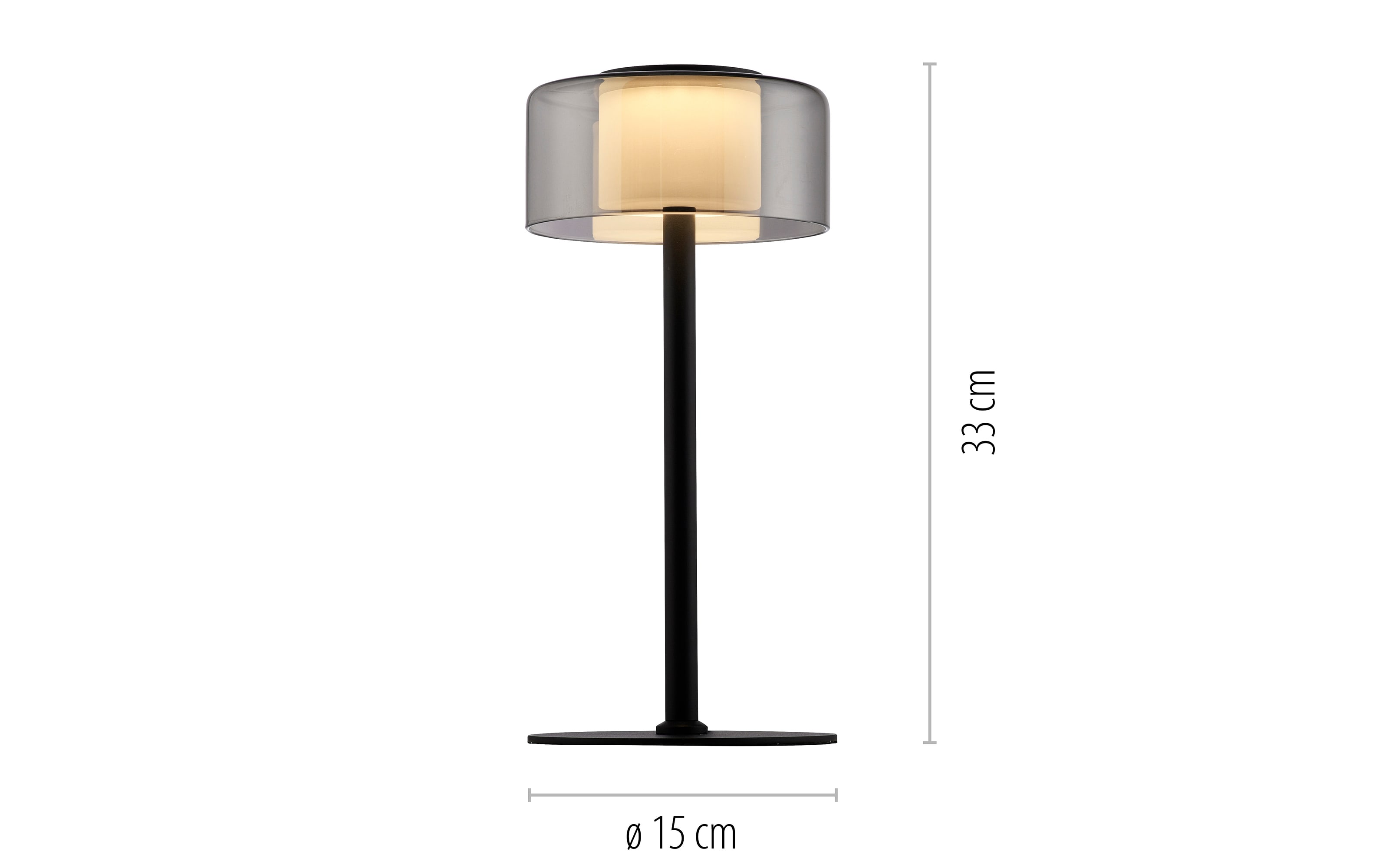 Ausführung in Schwarz mit Lampenschirm aus Rauchglas, 1-flammig, schlichtes und modernes Design für das Schlafzimmer, Büro oder Wohnbereich,