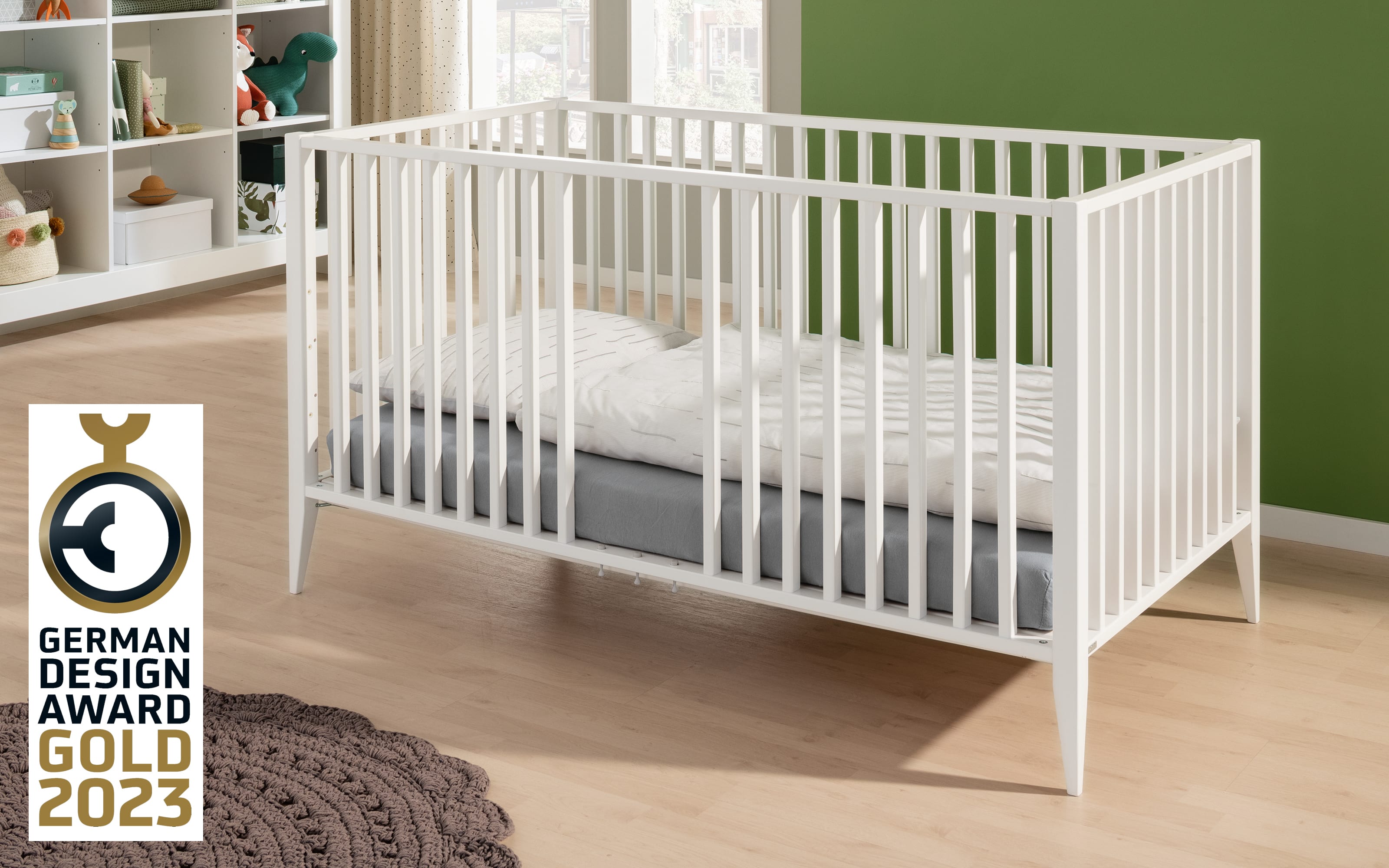 Babybett Felie, kreideweiß, Ausgezeichnet mit dem German Design Award 2023 in Gold
