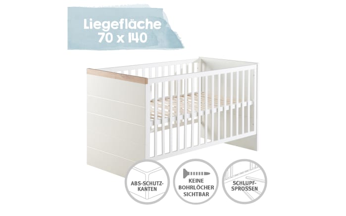 mit Flachstäben, 3 Schlupfsprossen, umbaubar zum Juniorbett mit separat erhältlicher Umbauseite, neutrale Farbgebung und passend für jedes Kinderzimmer,