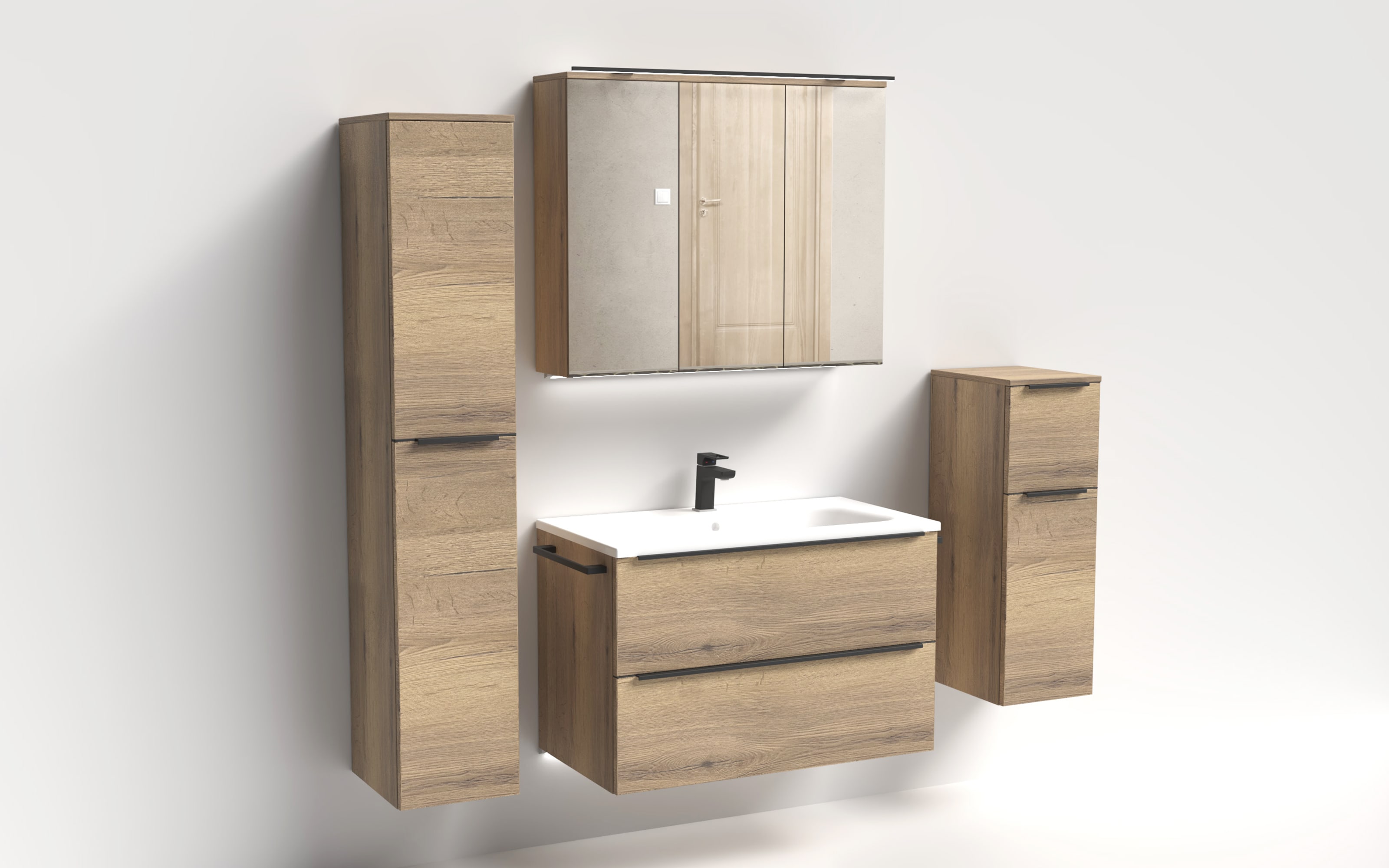 Badkombination Structura, Eiche Nachbildung, inkl. Hahnlochbohrung