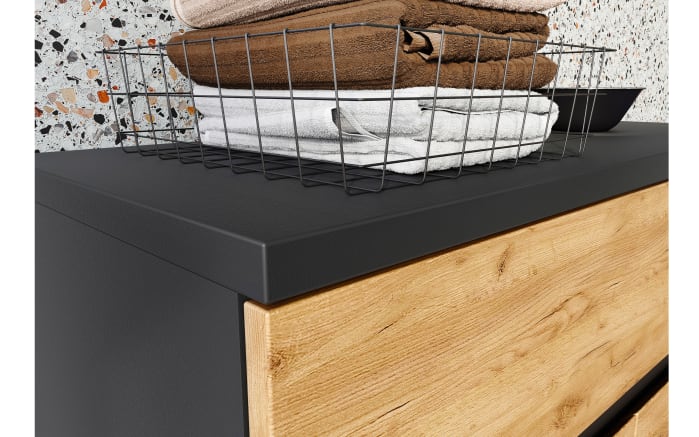 Korpus in graphit matt Melaminharzbeschichtet mit ABS-Kanten, Front in Navarra-Eiche Nachbildung , Grifflose Variante,