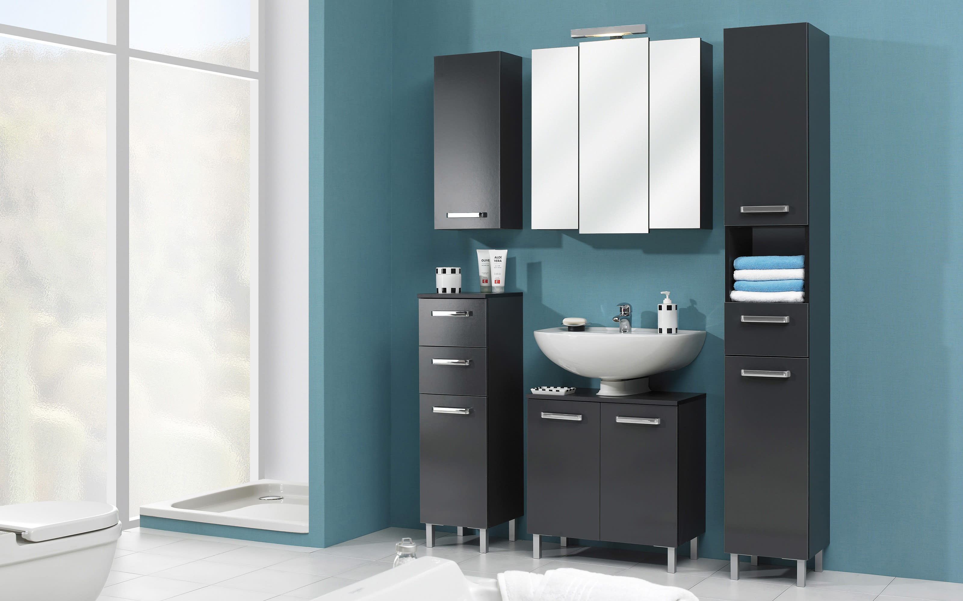 Front und Korpus in Anthrazit, Glanz, Griff in Chrom Glanz, 1 Tür, 2 Einlegeböden, inklusive Türdämpfer,