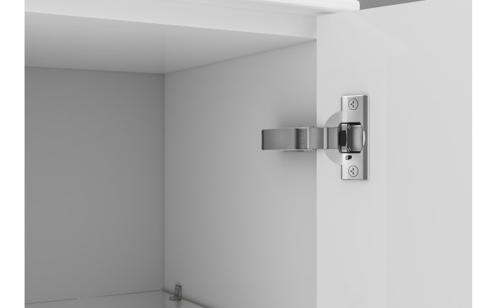Front in weiß Hochglanz, Korpus in weiß Glanz, Griff in chrom glanz, 1 Tür, 2 Einlegeboden, 2 Auszüge,