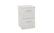 Ausführung mit Korpus in Weiß, matt und Front in Edelweiß, matt, 2 Auszüge mit Einzugsdämpfung, 1 Abdeckplatte,