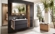 Waschbeckenunterschrank Bordeaux, schwarz/Eiche Halifax-Nachbildung, inkl. LED-Beleuchtung
