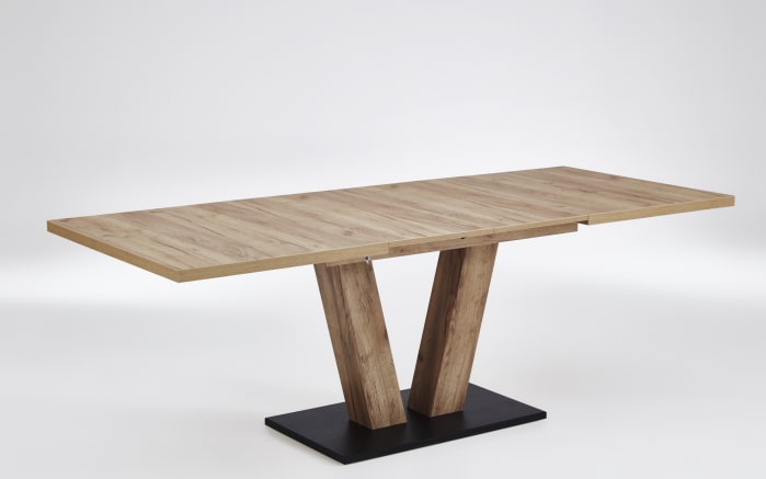 Ausführung in Struktureiche terra-Nachbildung, Gestell V-Säule, inklusive Ausziehfunktion, Bodenplatte geschwärzt