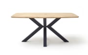 Ausführung der bootsförmigen Tischplatte in Balkeneiche massiv mit Schweizer Kante, Tischplattenstärke ca. 25 mm,