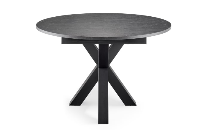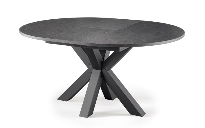Ausführung der Tischplatte in Keramik Nachbildung schwarz, inklusive 1 Klappeinlage 40 cm, formschönes Sterngestell in vulkanschwarz supermatt, inklusive Verbindungselement mit Synchronauszug,
