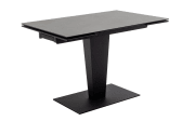 Ausführung der Tischplatte aus Keramik und Sicherheitsglas 14 mm in schwarz lackiert, Säule und Bodenplatte aus Metall in schwarz, inklusive Synchronauszug,