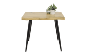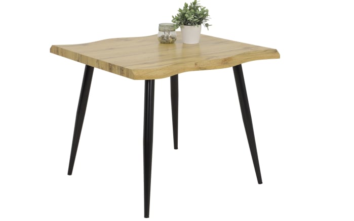 Ausführung Tischplatte aus Wildeiche Nachbildung, mit Baumkante, formschönes Metallgestell in schwarz pulverbeschichtet,