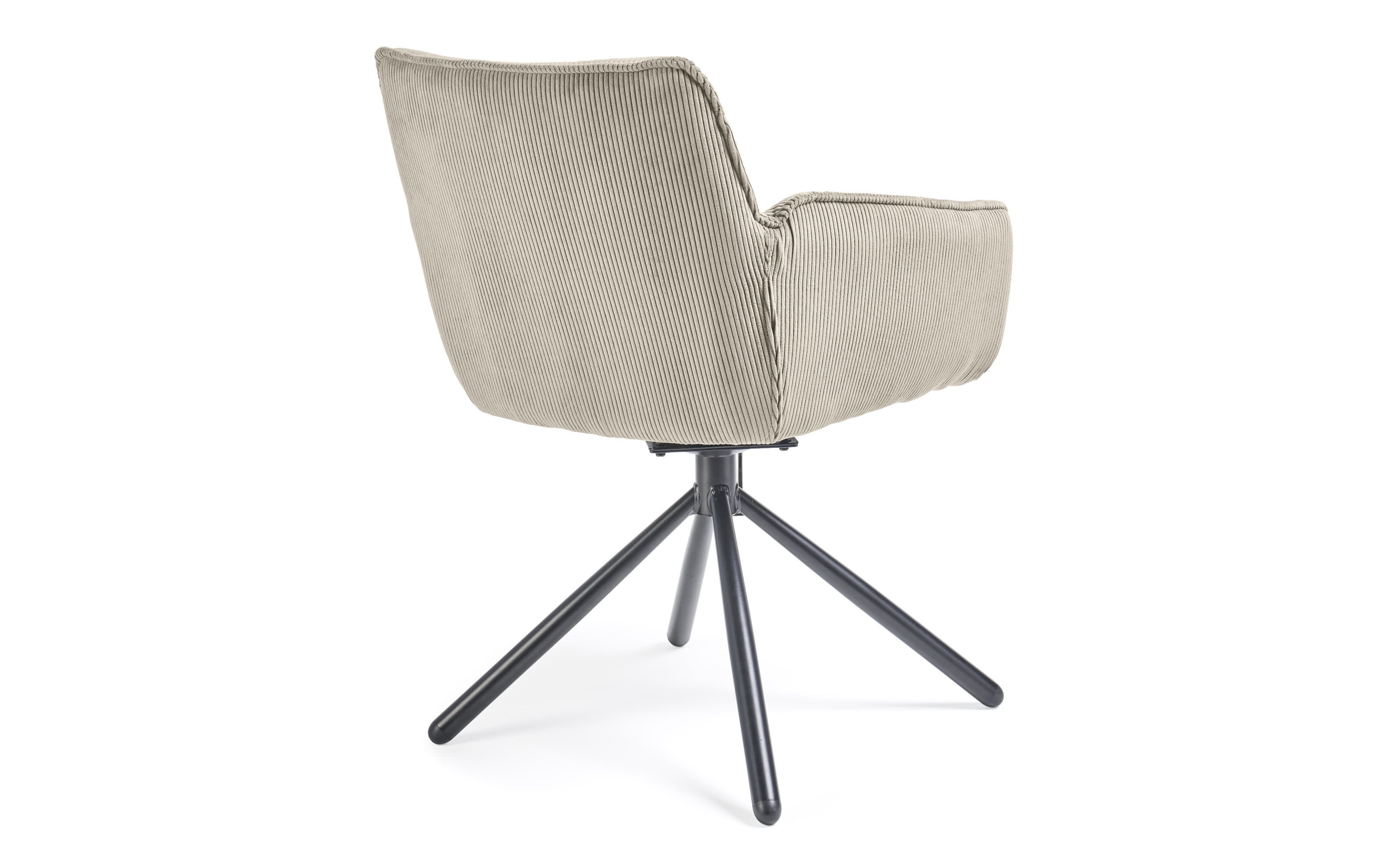 Ausführung mit Cordbezug in Rebel ecru, Sitz und Rücken mit Komfortpolsterschale, Stativgestell aus Eisen in schwarz 180° drehbar, mit Rückholfunktion,
