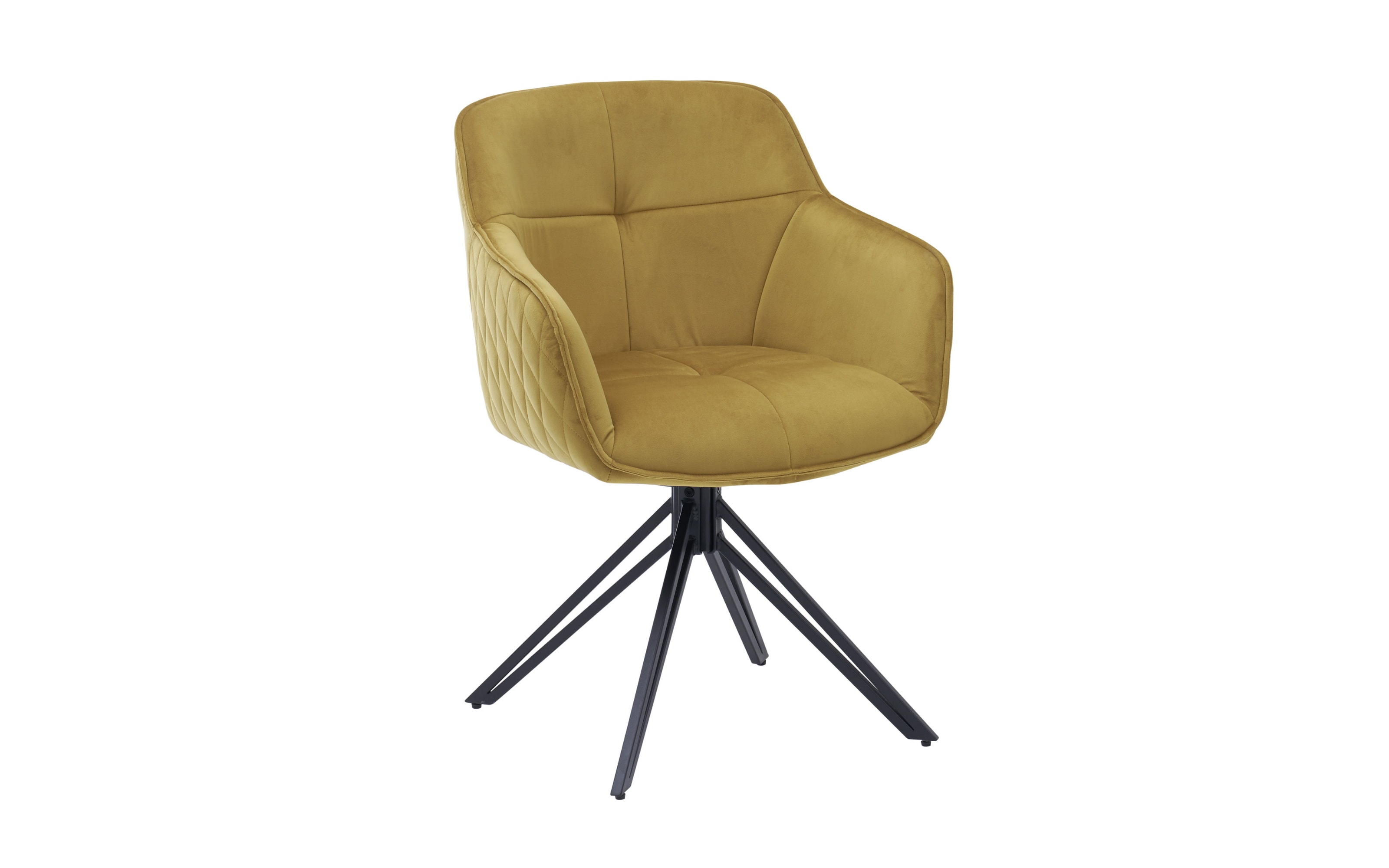 Ausführung mit Samtbezug in gold, Gestell aus Metall in schwarz matt, 180° drehbar und mit Auto-Return-Funktion,