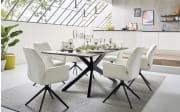 Ausführung Stoff Boucle Alpine in champagne, Sitz mit Wellenfederung, formschönes Stativ-Gestell aus Eisen in schwarz, 180° drehbar mit Rückholfunktion,