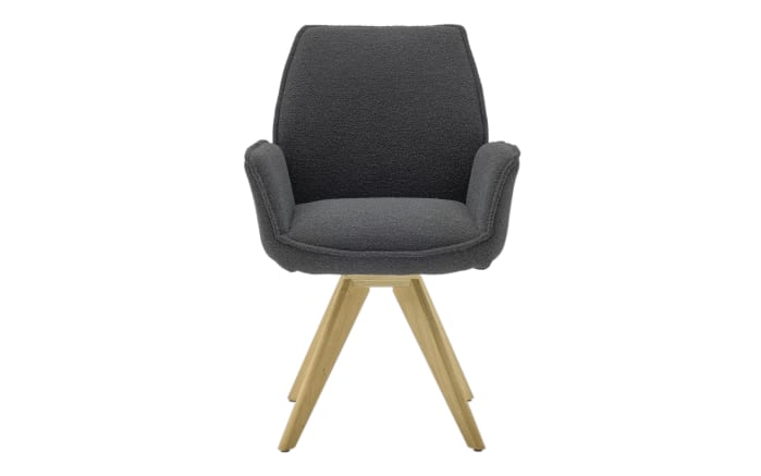 Ausführung Stoff Boucle Alpine in onyx, Sitz mit Wellenfederung, formschönes Stativ-Gestell aus Eiche massiv, 180° drehbar mit Rückholfunktion,