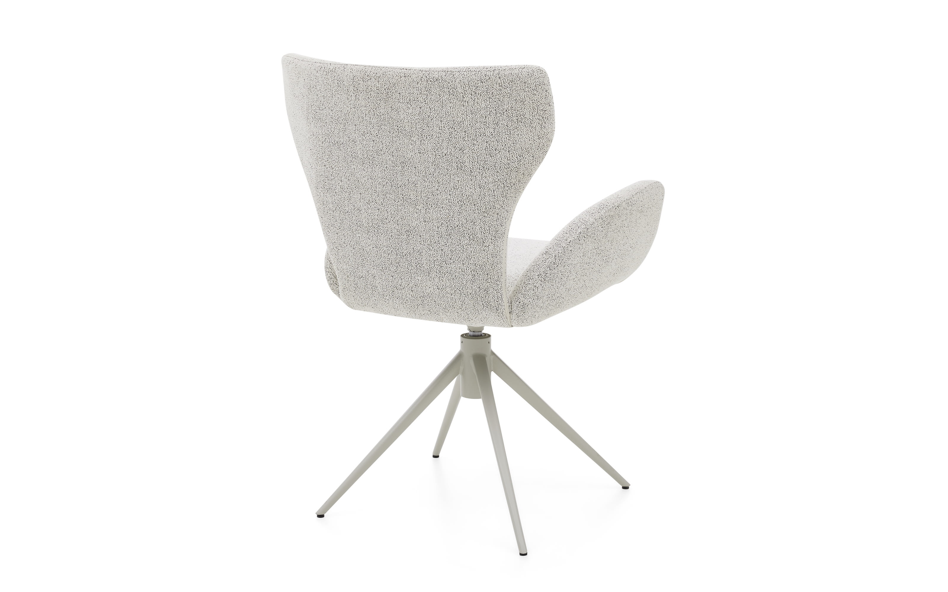 Ausführung Bezug Boucle Elegant in champagne, Gestell aus Metall in seidengrau lackiert, 360° drehbar mit Rückholfunktion.