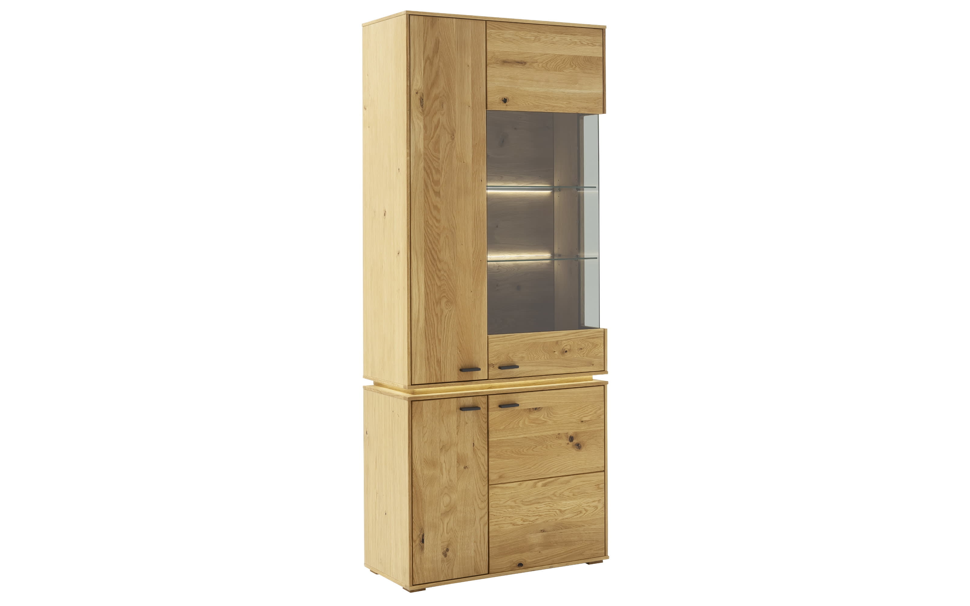 Kombi-Vitrine Como, Wildeiche massiv geölt, inkl. LED-Beleuchtung