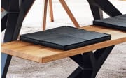 Ausführung der Bank aus massiver Charaktereiche, mit Gestell aus Eisen in schwarz, ohne Sitzkissen,