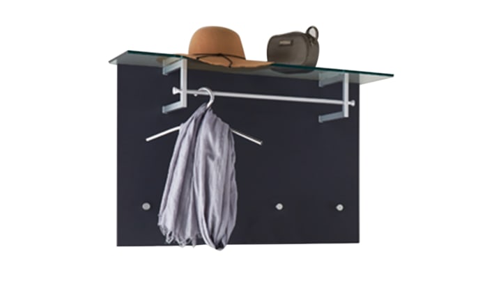 Ausführung mit Korpus und Front in anthrazit matt, Ablagefläche aus Glas, mit Kleiderstange und 4 Haken,