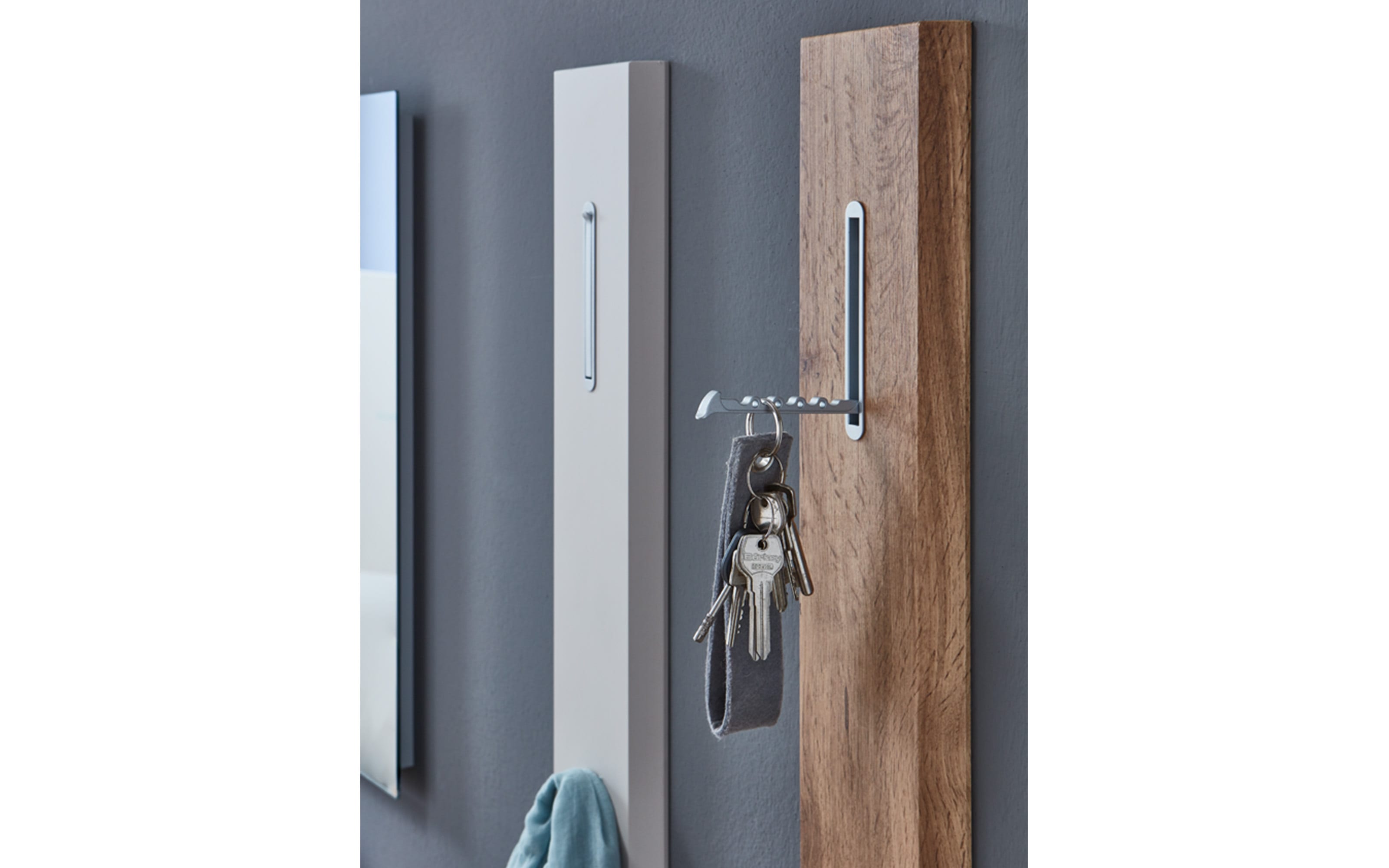 Ausführung mit Front in sand matt, 1 ausklappbarer Haken, 3 Haken aus Metall,