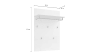 Ausführung mit Front in Hochglanz weiß lackiert, 1 Hutablage in grau, 1 Kleiderstange und 5 Haken in schwarz,