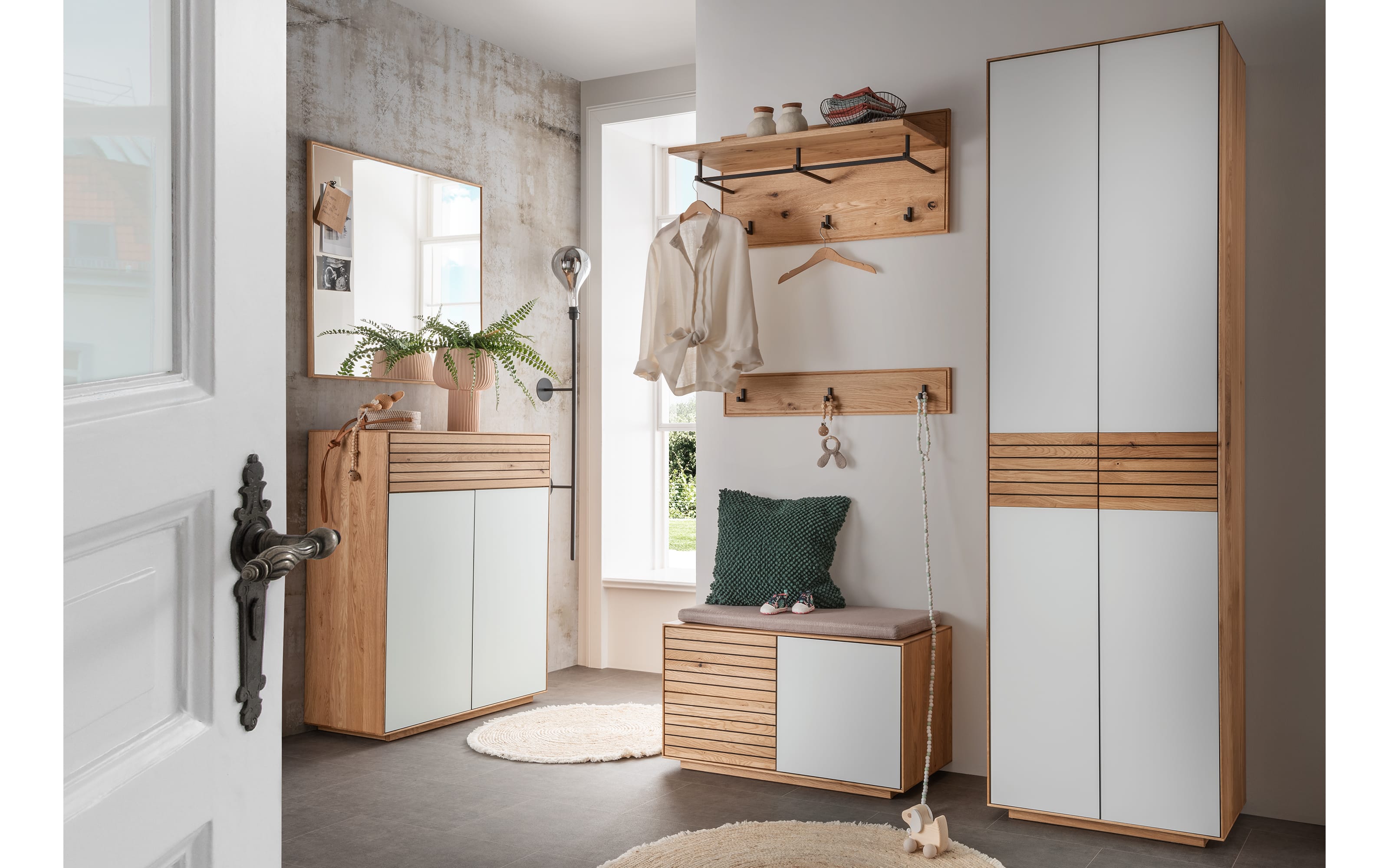 Dielenschrank Riva, Eiche massiv/weiß, inkl. Kleiderstange