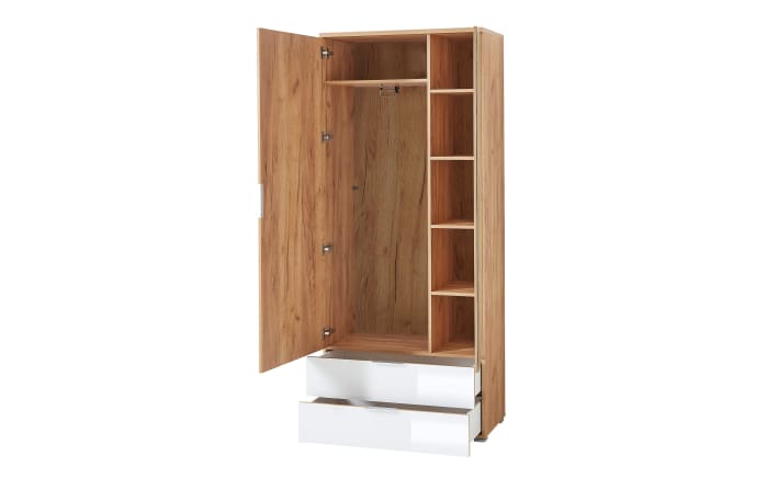 Garderobenschrank GW-Telde, weiß/Eiche Nachbildung, inkl. Kleiderstange