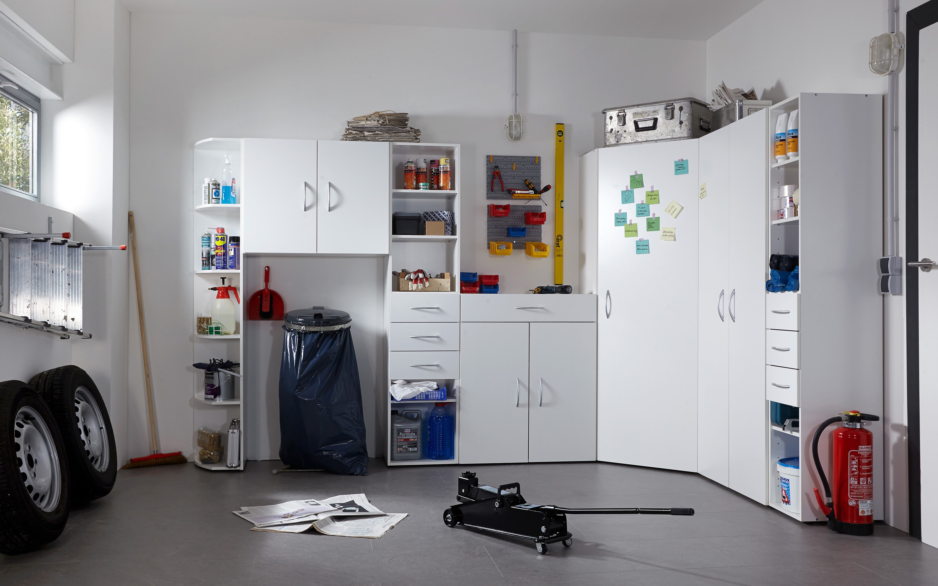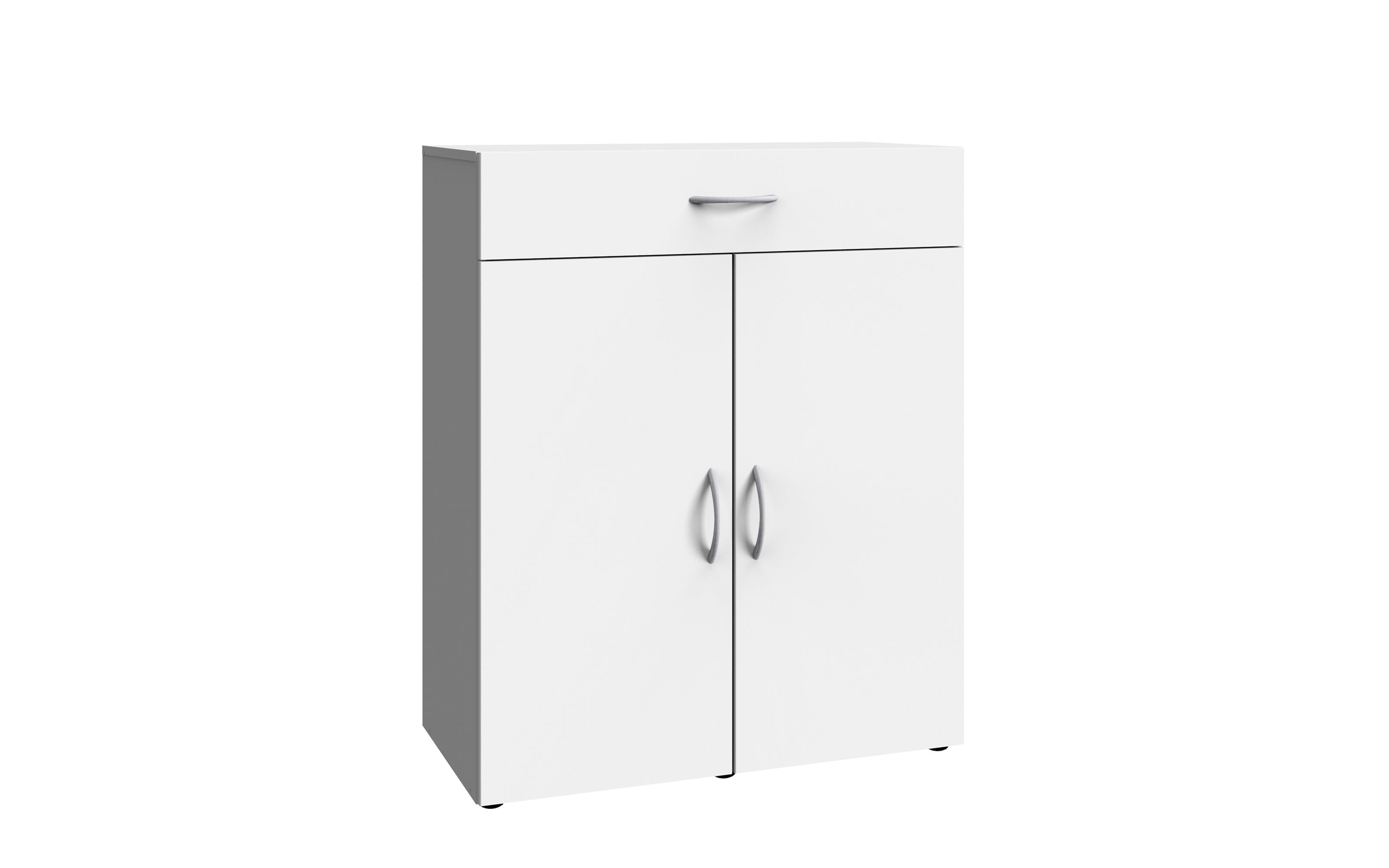 Ausführung mit Front und Korpus in weiß, matt, 1 Schubkasten, 2 Türen, 2 Einlegeböden, mit Multiraumkonzept-Schränken kombinierbar,