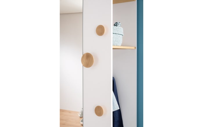 inklusive 2 Einlegeböden, 1 Kleiderstange, 1 Spiegel, 3 Knöpfe als Aufhänger,