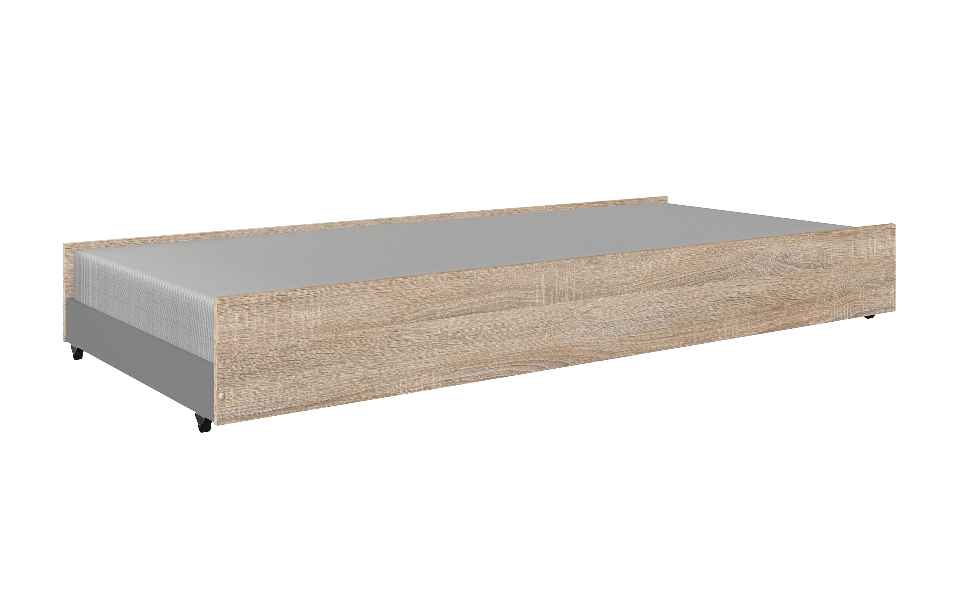 Ausführung mit Front und Korpus in Eiche-Nachbildung, sägerau, inklusive Rollrost, auf praktischen Rollen, max. Matratzenhöhe 185 mm, mit Multiraumkonzept-Schränken kombinierbar,