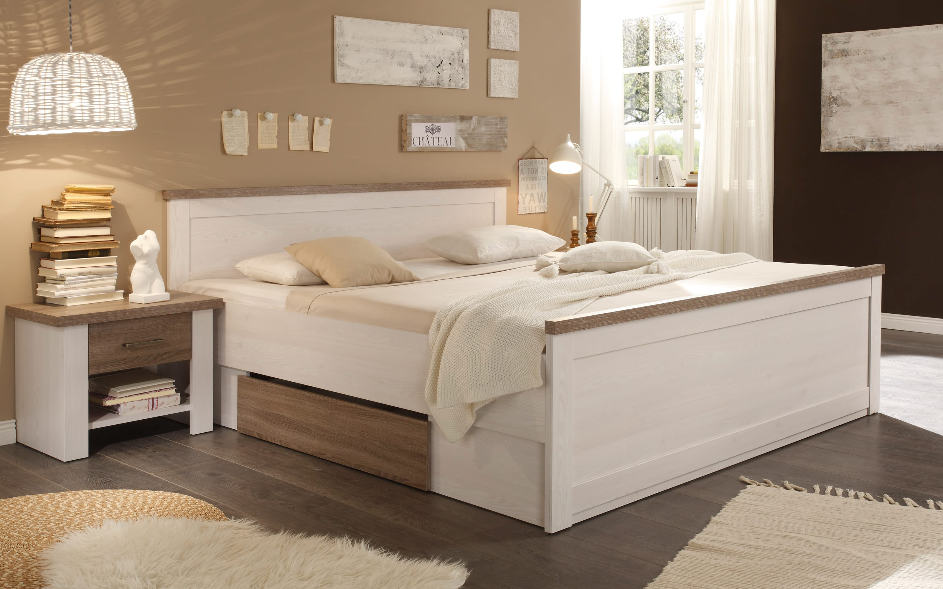 - Inklusive Nachttische mit Schubkasten und Ablagefach