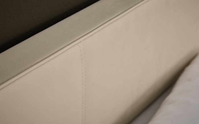 Doppelbett mit Polsterkopfteil aus Leder-Nachbildung in champagner,