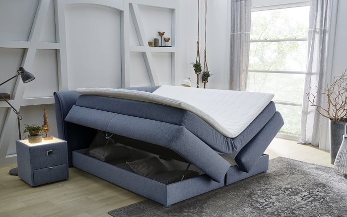 Boxspringbett Carla Mix, blau, 160 x 200 cm, Härtegrad medium und fest