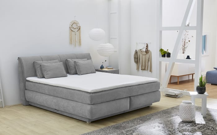 Boxspringbett Carla Mix, silbergrau, 180 x 200 cm, Härtegrad medium und fest