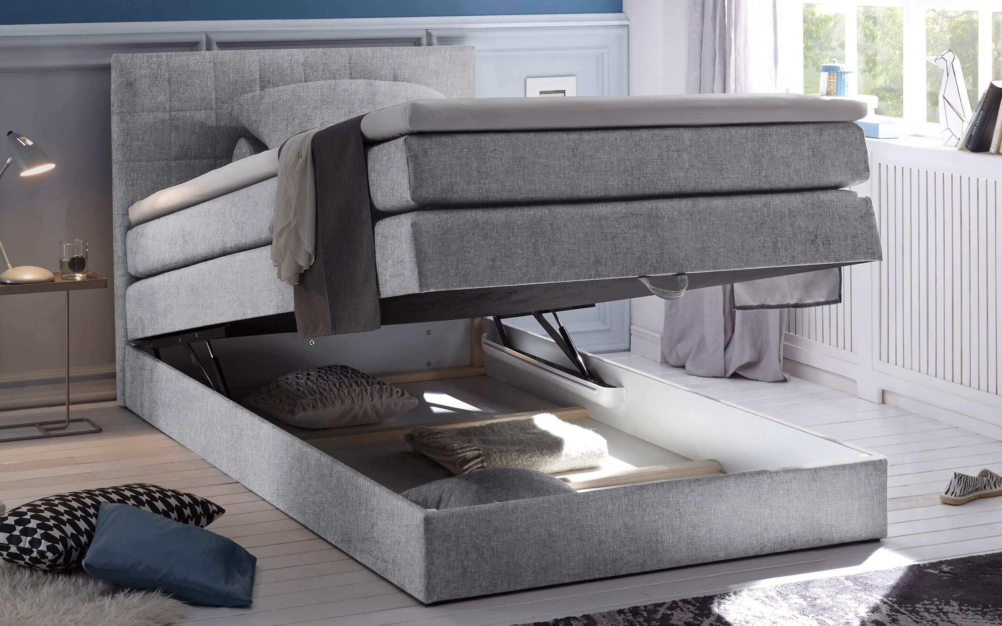 Boxspringbett Hawaii 2, light grey, 120 x 200 cm, inkl. Topper und Bettkasten Im Artikel enthalten