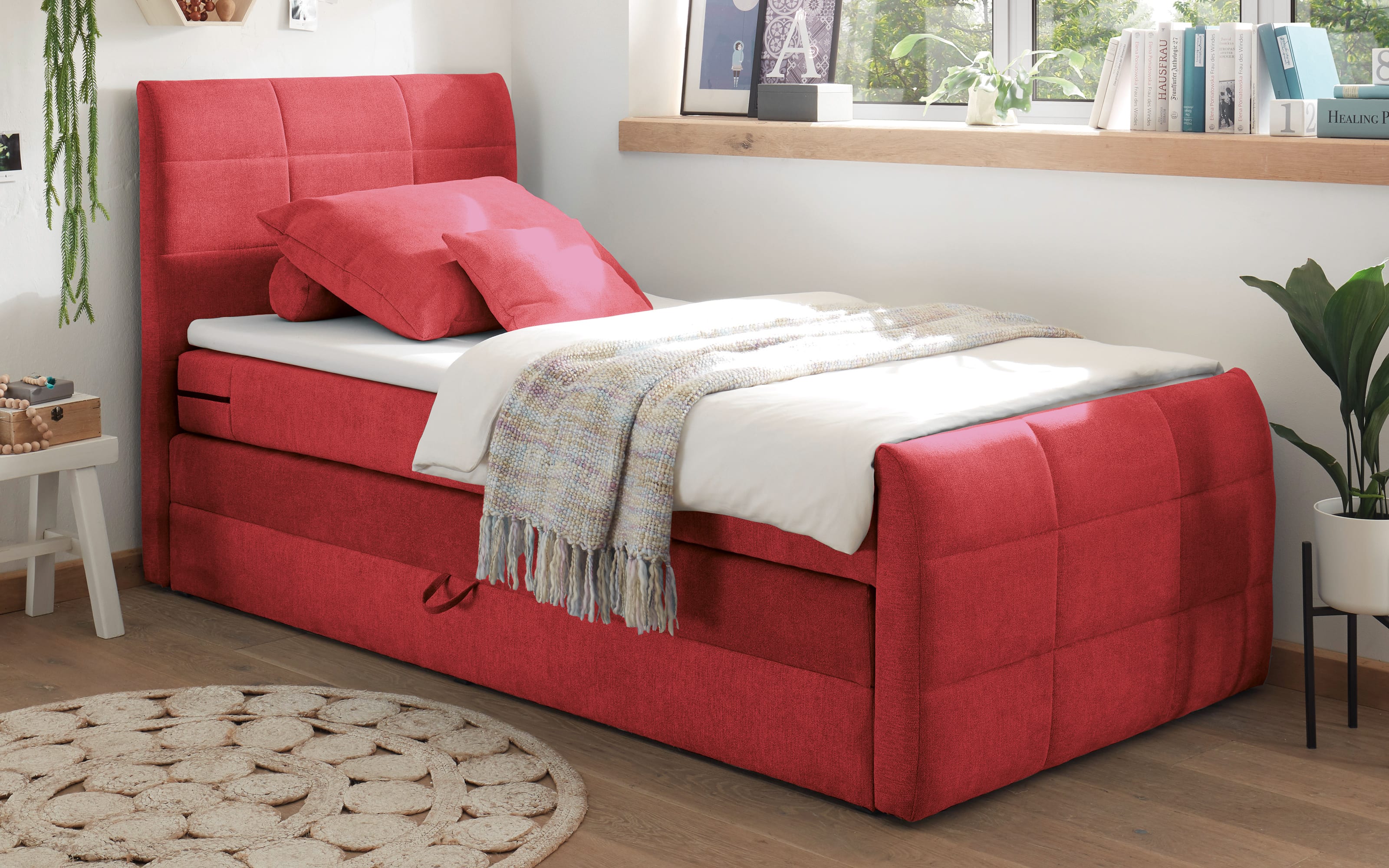 Ausführung mit Stoffbezug in berry, 7-Zonen-Tonnentaschenfederkern,