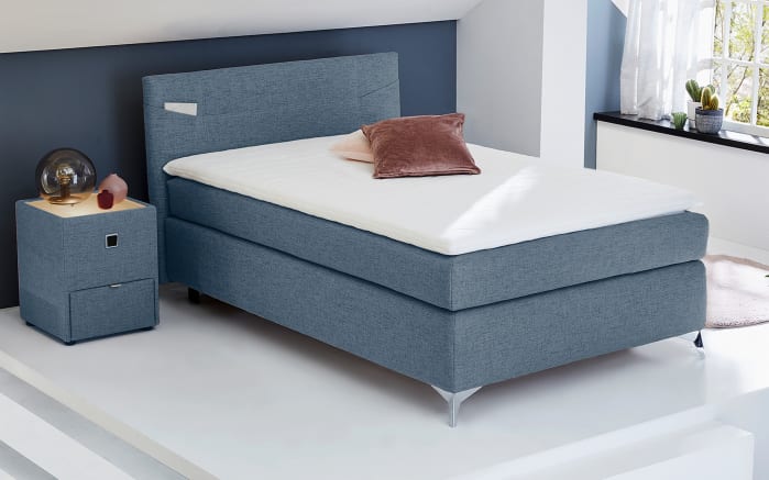 Ausführung mit Stoffbezug in blau, wendbare Bonellfederkern-Matratze von Härtegrad 2 auf Härtegrad 3,