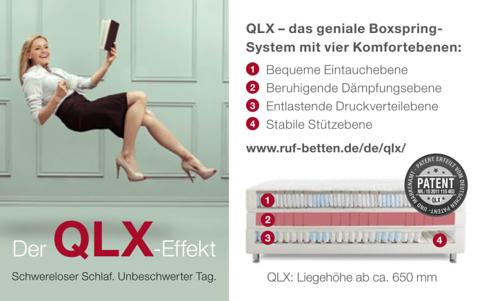 - Patentierter QLX-Schlafkomfort für schwerelosen Schlaf