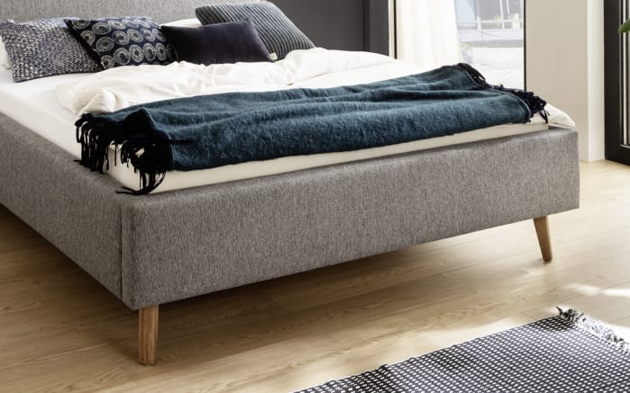 Polsterbett Frieda, grau/Eiche-Nachbildung,180 x 200 cm