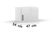 Ausführung mit Front in alpinweiß und Korpus in weiß Hochglanz, Griff in grau/metallic, 1 Tür,