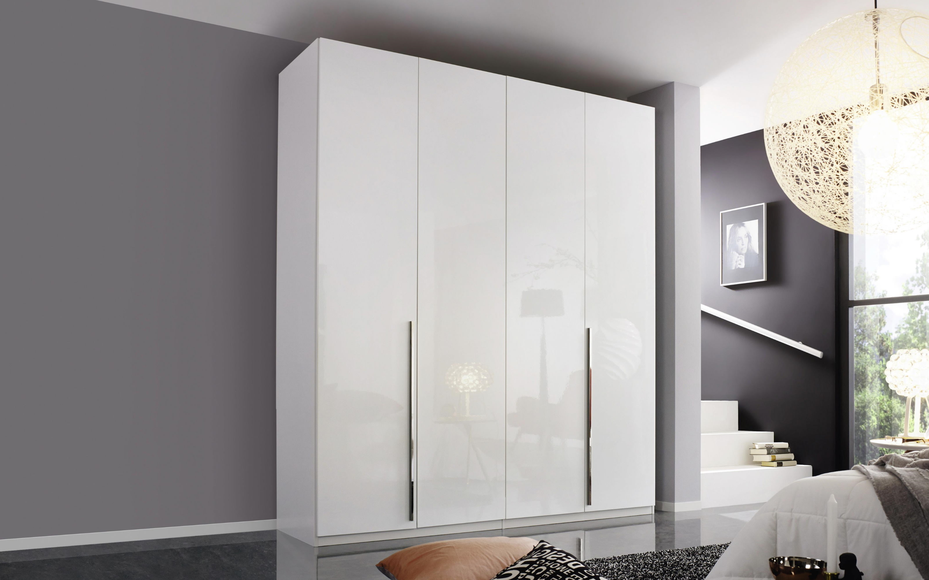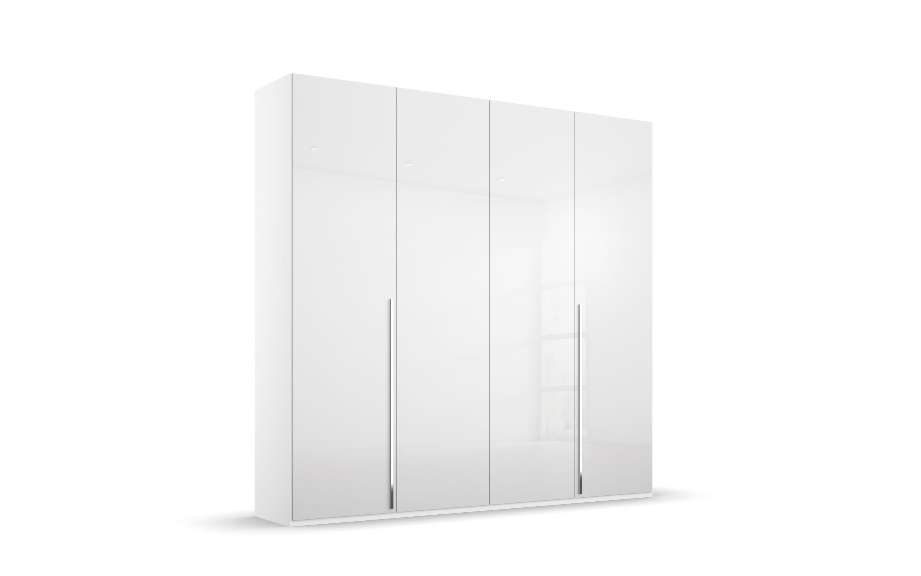 Korpus in alpinweiß, Front in alpinweiß hochglanz, Griffe chromfarbend, 4-türig, Inneneinteilung ca. 100/100 cm,