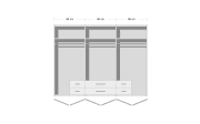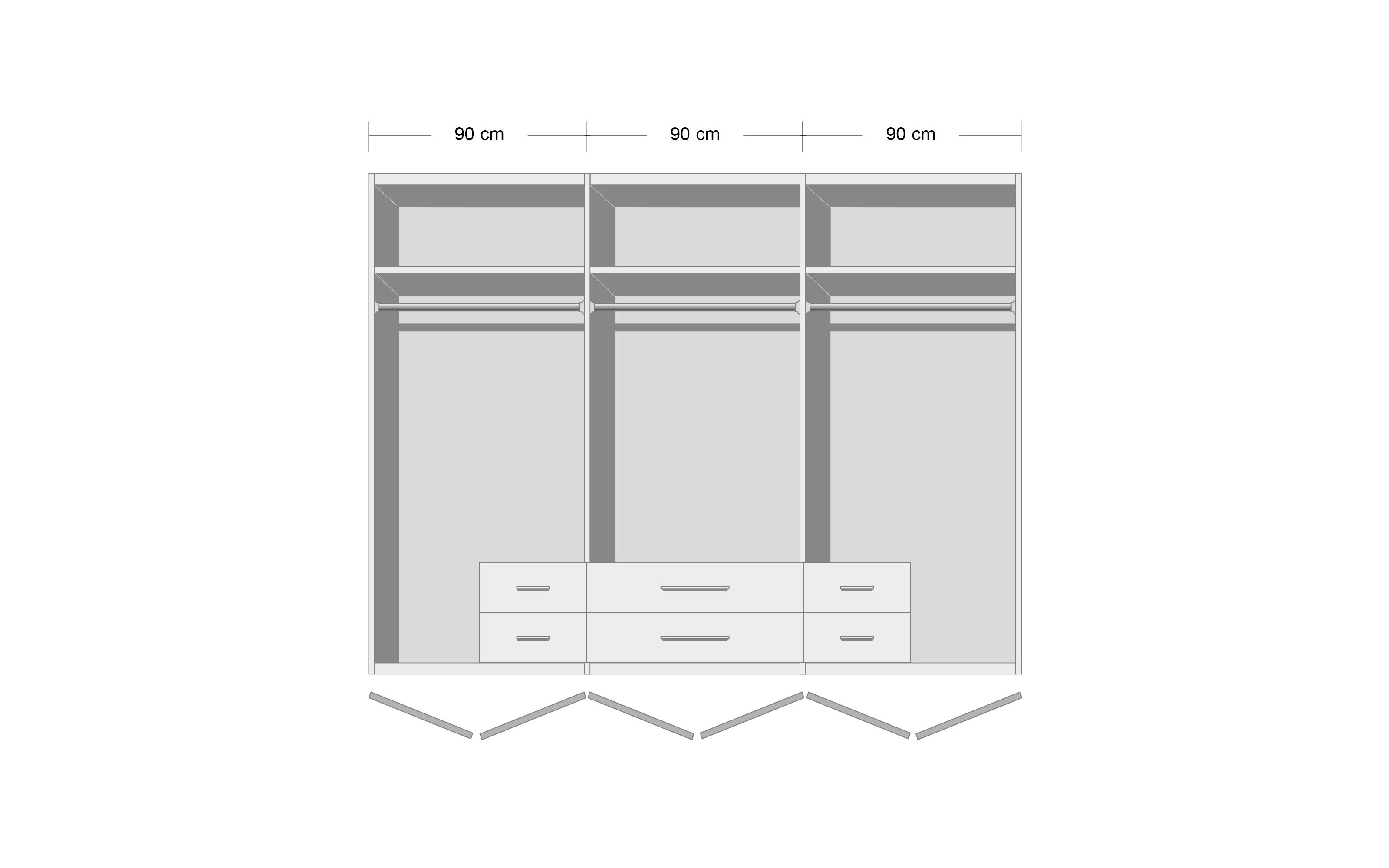 Inneneinteilung ca. 90/90/90 cm mit je 1 Einlegeboden und 1 Kleiderstange pro Element, B/H/T ca. 270 x 210 x 54 cm.