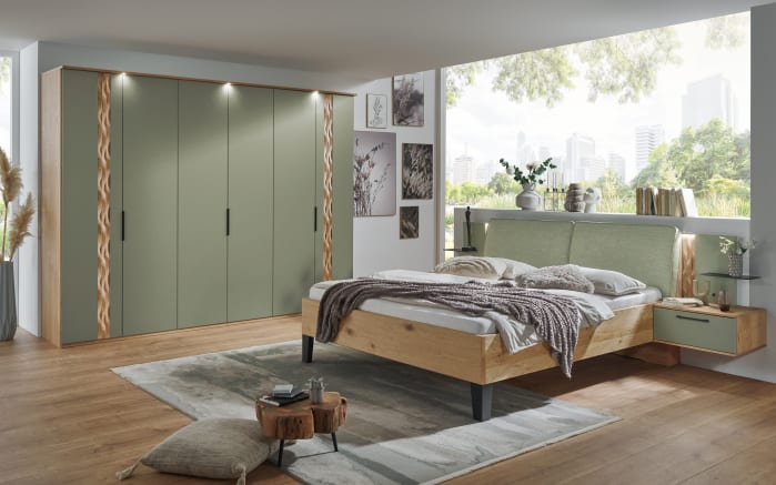 Drehtürenschrank Callao, Balkeneiche-Nachbildung/grün, 299,2 x 229,4 cm