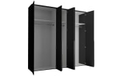 Moderner Drehtürenschrank mit Korpus und Front in Graphit, matt, melaminharzbeschichtet, Griffleisten in Schwarz,