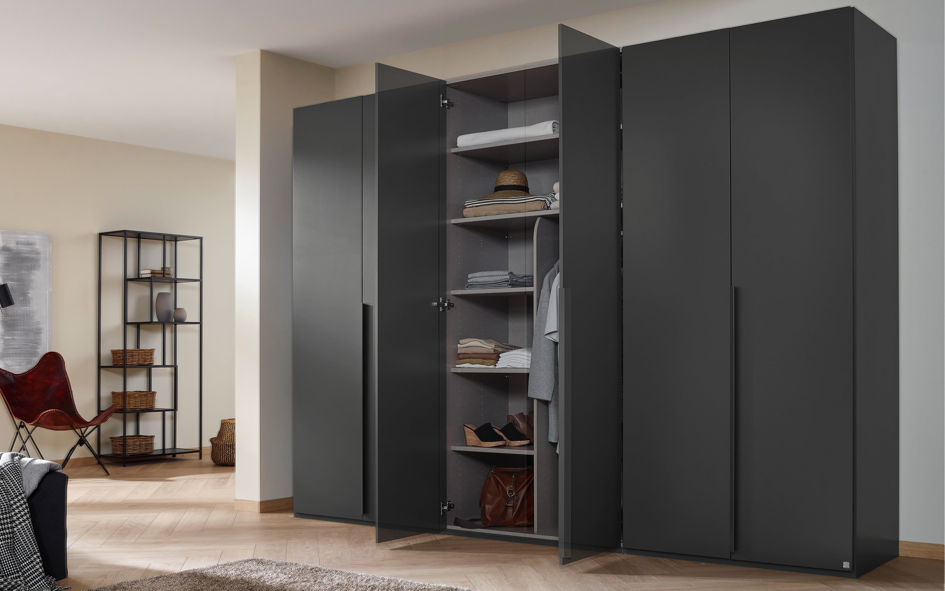 Drehtürenschrank Purisma, graphit, 301 x 223 cm, inkl. umfangreicher Zusatzausstattung