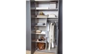 rechtes Element mit 2 Einlegeböden lang, eine T-Einteilung mit 1 Kleiderstange kurz und 3 Einlegeböden kurz, B/H/T ca. 301 x 223 x 60 cm.