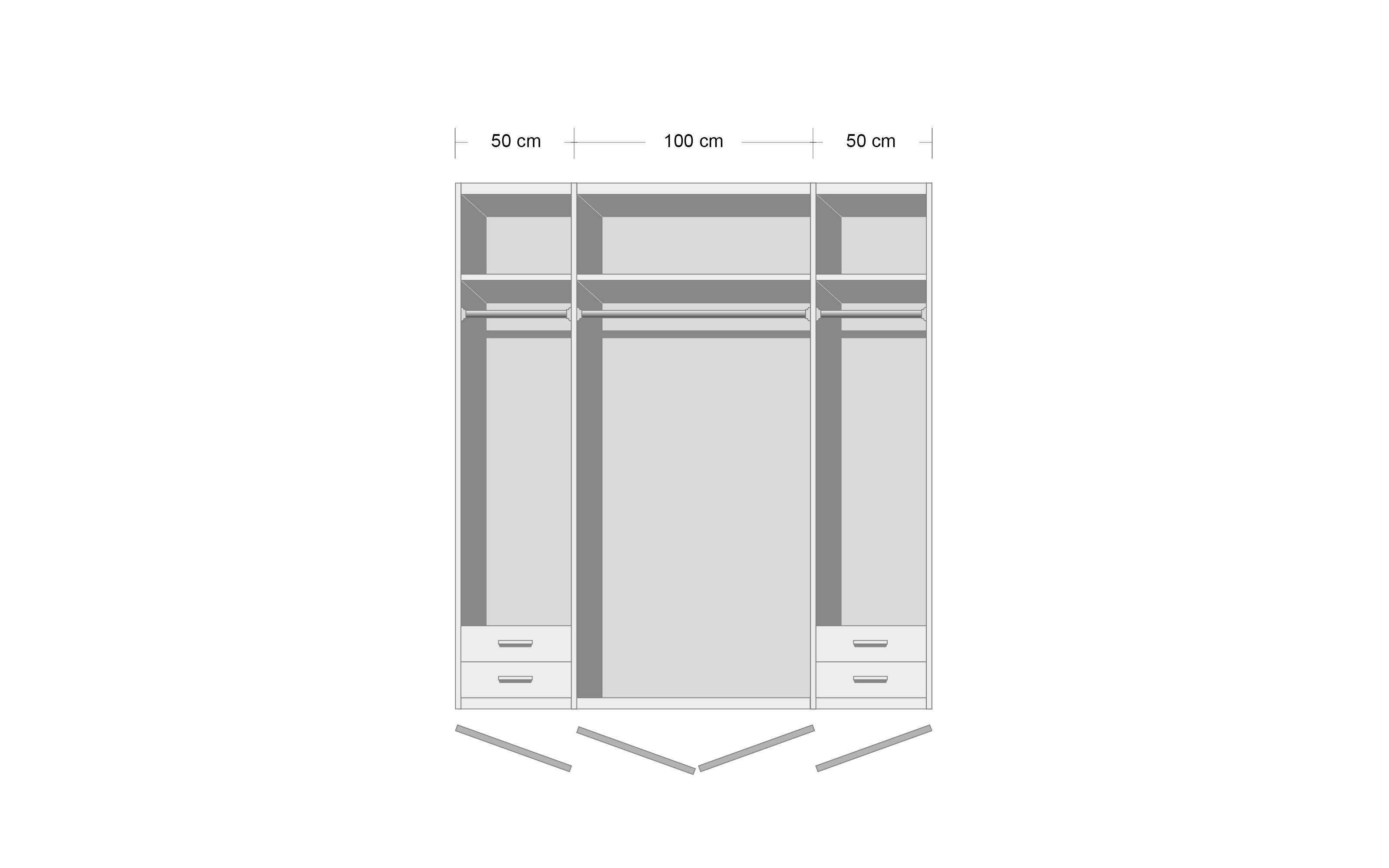 4-türig, mit 4 Schubkästen, Inneneinteilung ca. 50/100/50 cm,