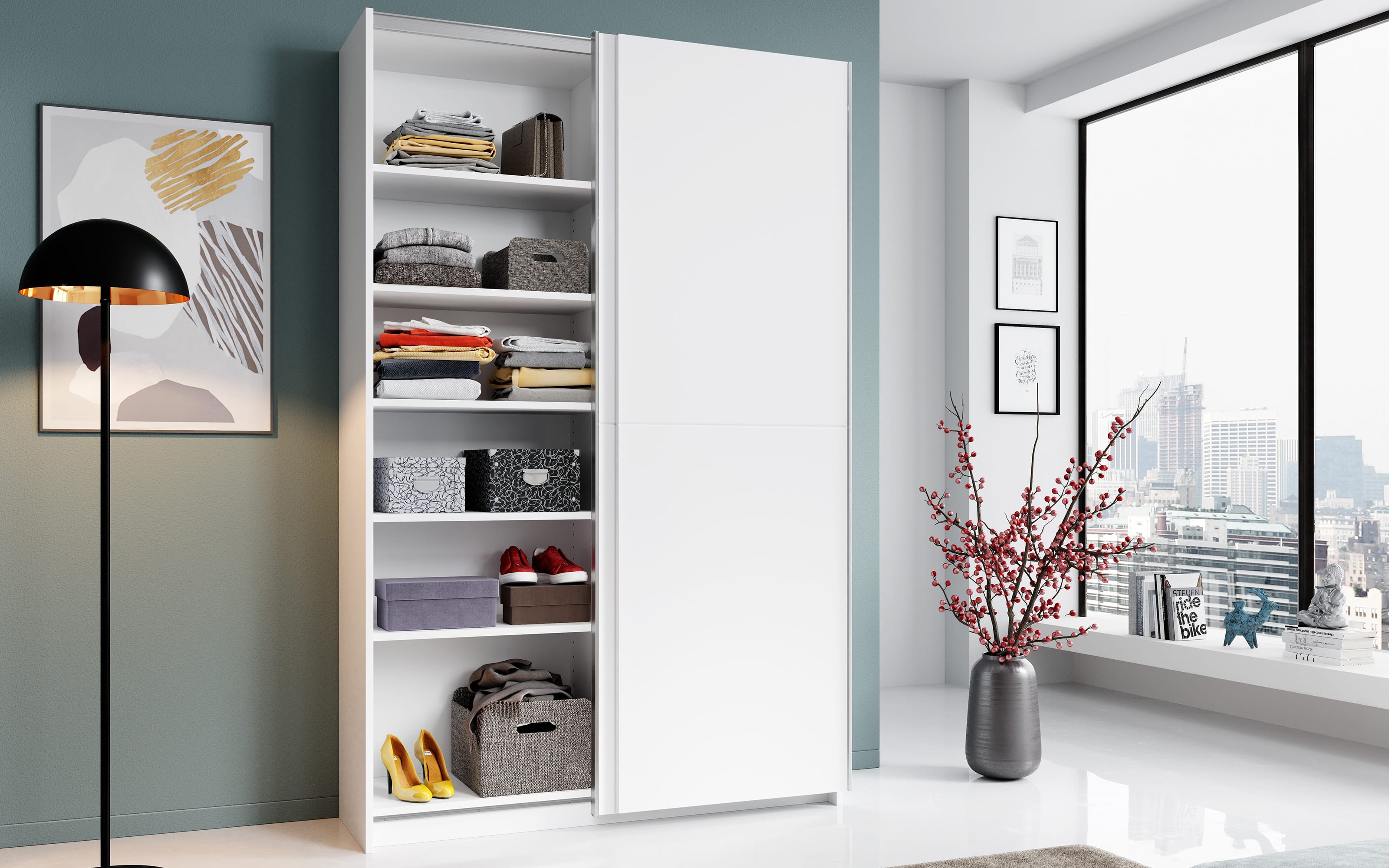 Schwebetürenschrank Fast, weiß, 125 x 195 cm