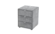 Nachtkonsole mit samtigem Chenillebezug in Hellgrau, Kunststofffüße in Schwarz, 3 praktische Schubkästen, Griffe in Chromfarbig,