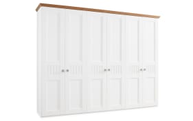 Ausführung Front und Korpus mit hochwertiger Lackoberfläche in weiß, Absetzungen in Wildeiche,