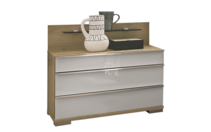 Ausführung Korpus in Bianco Eiche-Nachbildung, Front in Glas weiß,